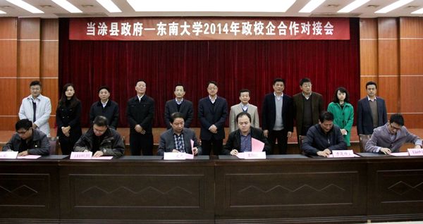 11月29日上午,当涂县政府— 2014年政校企合作对接会在县行政中心楼会议室召开。当涂县张志强县长主持会议,当涂县委书记杨善斌和 副校长郑家茂分别致辞并共同为 国家技术转移中心当涂分中心揭牌,同时揭牌的还有 优质生源基地和 附属中大医院合作医院。马鞍山当涂发电有限公司与 能源环境学院、马鞍山恒毅机械制造有限公司与 自动化学院、安徽力通稀土钢缆有限公司与 材料学院等3个科技合作项目进行了签约,县委县政府四大班子领导与 领导共同为签约项目见证。随后,我校信息学院、自动化学院、机械学院、材料学院以及化工学院等专家作了相关科研成果发布,并与多位企业家洽谈技术合作。(朱兆斌)