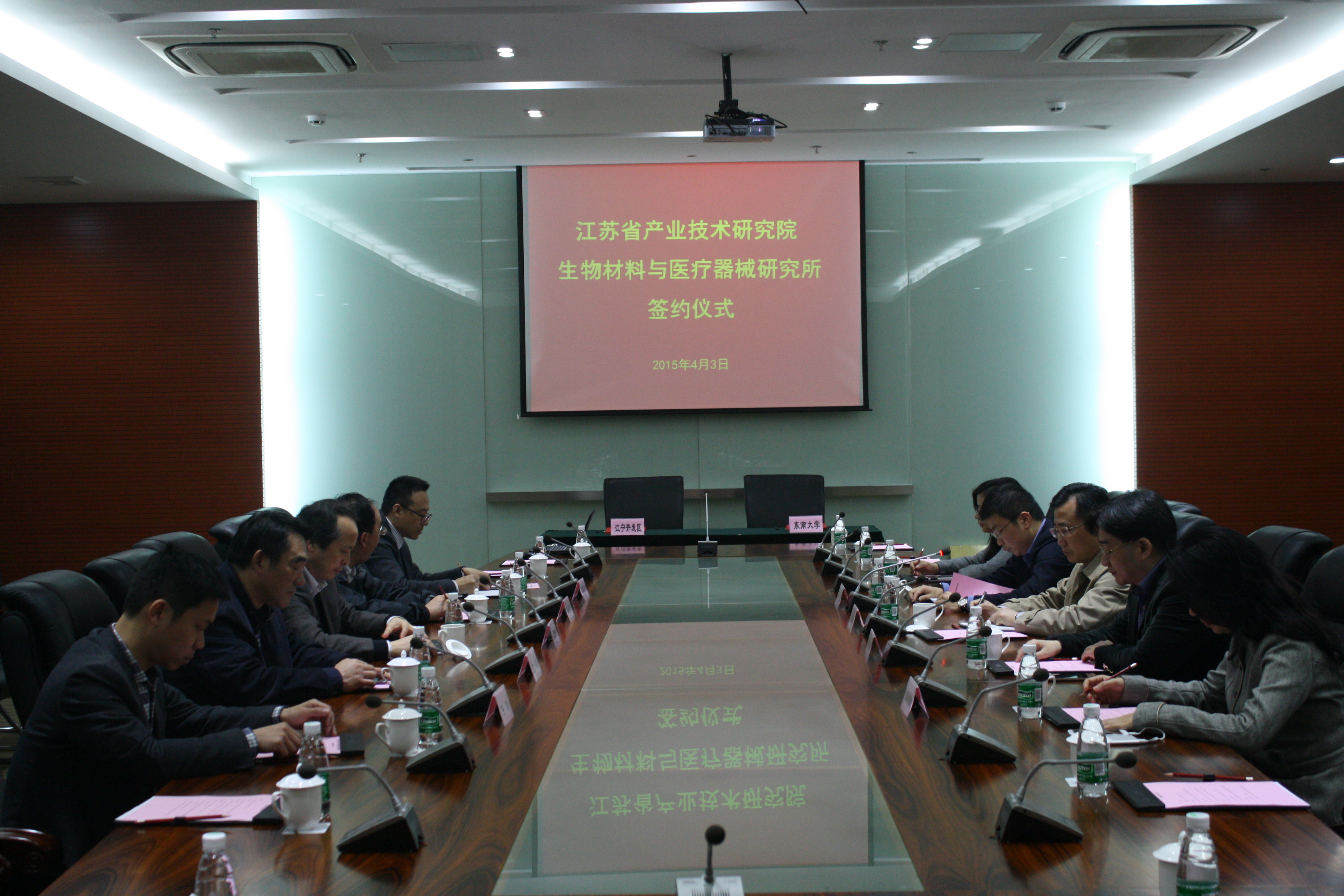4月3日, 在无线谷同江宁经济技术开发区签订共建江苏生物材料与医疗器械研究所协议。 副校长王保平和区委常委、开发区管委会常务副主任戴华杰共同签署合作协议。参加签约仪式的江宁开发区领导有:陈开庆、张宾、薛洪波等, 领导有孙岳明、江汉、顾忠泽、任刚等。在签约仪式上,江宁开发区领导戴华杰表示,开发区将充分发挥人才、产业集聚和政策优势,加大人力、财力等方面的支持力度,为研究所产业化发展提供一流环境。 副校长王保平表示, 将充分发挥学科专业和资源优势,结合开发区科技创新要求,加快建成国内一流的生物材料与医疗器械平台,加快推进研究所的产业化发展。