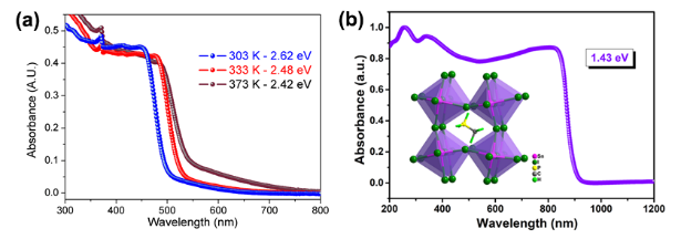 图2. (a) (CH3PH3)SnBr3和(b) (CH3PH3)SnI3的紫外可见吸收光谱