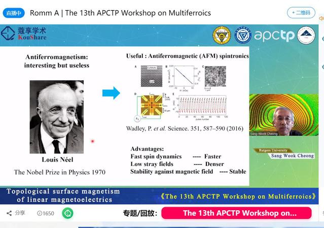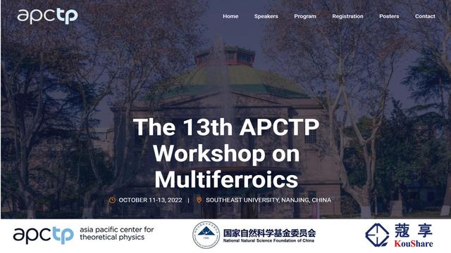 【东大新闻网10月20日电】(通讯员 董帅)10月11-13日, 物理学院组织举办了第十三届亚太理论物理中心多铁材料会议(The 13th APCTP Workshop on Multiferroics)。亚太理论物理中心多铁材料会议从2008年起始,每年在亚太地区轮流承办。该会议因专业性、学术性、高层次,已经成为多铁性物理与材料领域国际最知名的专业研讨会,吸引了全球研究者的关注。经过向亚太理论物理中心申请, 获得了第十三届亚太理论物理中心多铁性材料会议的承办权。