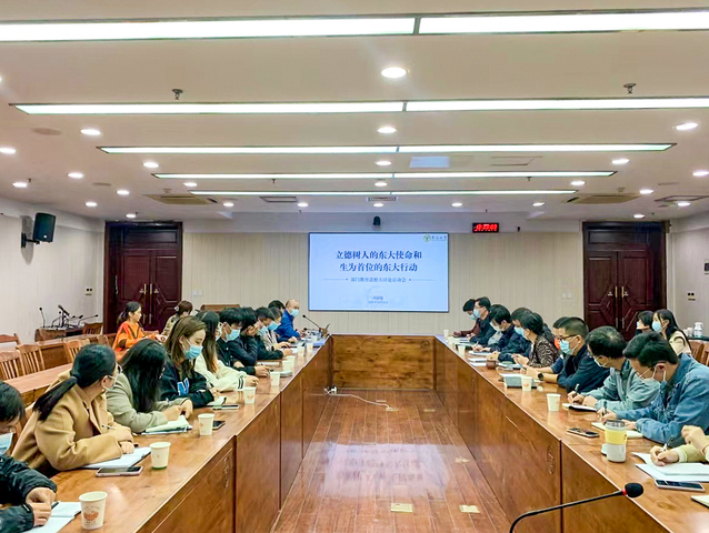会上,科研院院长陆卫兵紧密围绕“立德树人的东大使命和生为首位的东大行动”的主题,传达了 新一轮教育思想大讨论启动会的主要精神,学习回顾了学校党委书记左惟《在最好的时代培养最好的学生》的专题讲话、校长黄如《立德树人的东大使命和生为首位的东大行动》的动员报告以及常务副校长吴刚关于本轮教育思想大讨论的工作方案。