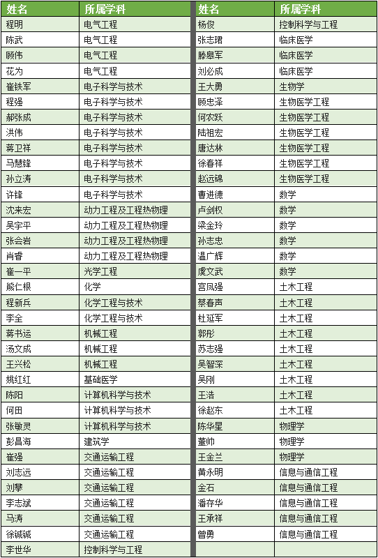 在本次高被引学者名单中, 共计入选69人(位列高校第15名)。入选人数最多的学科是土木工程,共9人。其他学科包括:电子科学与技术领域入选8人,数学、交通运输工程、生物医学工程领域各有6人,在信息与通信工程领域有5人、动力工程及工程热物理和电气工程领域各有4人,在机械工程、计算机科学与技术、物理学和临床医学领域各有3人,在化学工程与技术、控制科学与工程领域各有2人入选,在生物学、光学工程、化学、建筑学、基础医学领域各有1人入选。