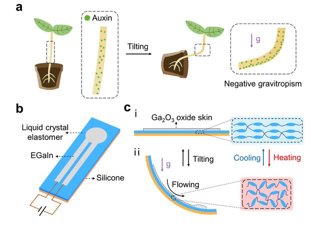 近日, 生物科学与医学工程学院POCT课题组刘宏研究员与马标博士在国际著名学术期刊《Advanced Science》在线发表标题为“Soft Robots with Plant-Inspired Gravitropism Based on Fluidic Liquid Metal”的最新研究成果。受植物向重性启发,研究人员将液态金属与智能热响应液晶弹性体结合,构建了无电子控制的仿生智能软体机器人。