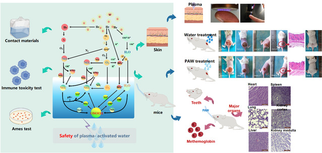 等离子体活化水已被证明在农业、生物医学和食品中具有突出的生物活性。该研究全面介绍等离子体活化水的制备装置,阐明制备途径,并从分子动力学的角度揭示等离子体中活性物质的抗菌机制。此外,从接触材料、皮肤细胞、小鼠毒性、致突变性实验和免疫毒性实验等方面探讨等离子体活化水的安全性。