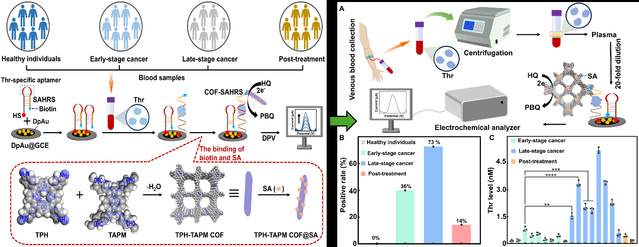 图1. COF-SAHRS传感器的构建及人体血液样本中的检测应用