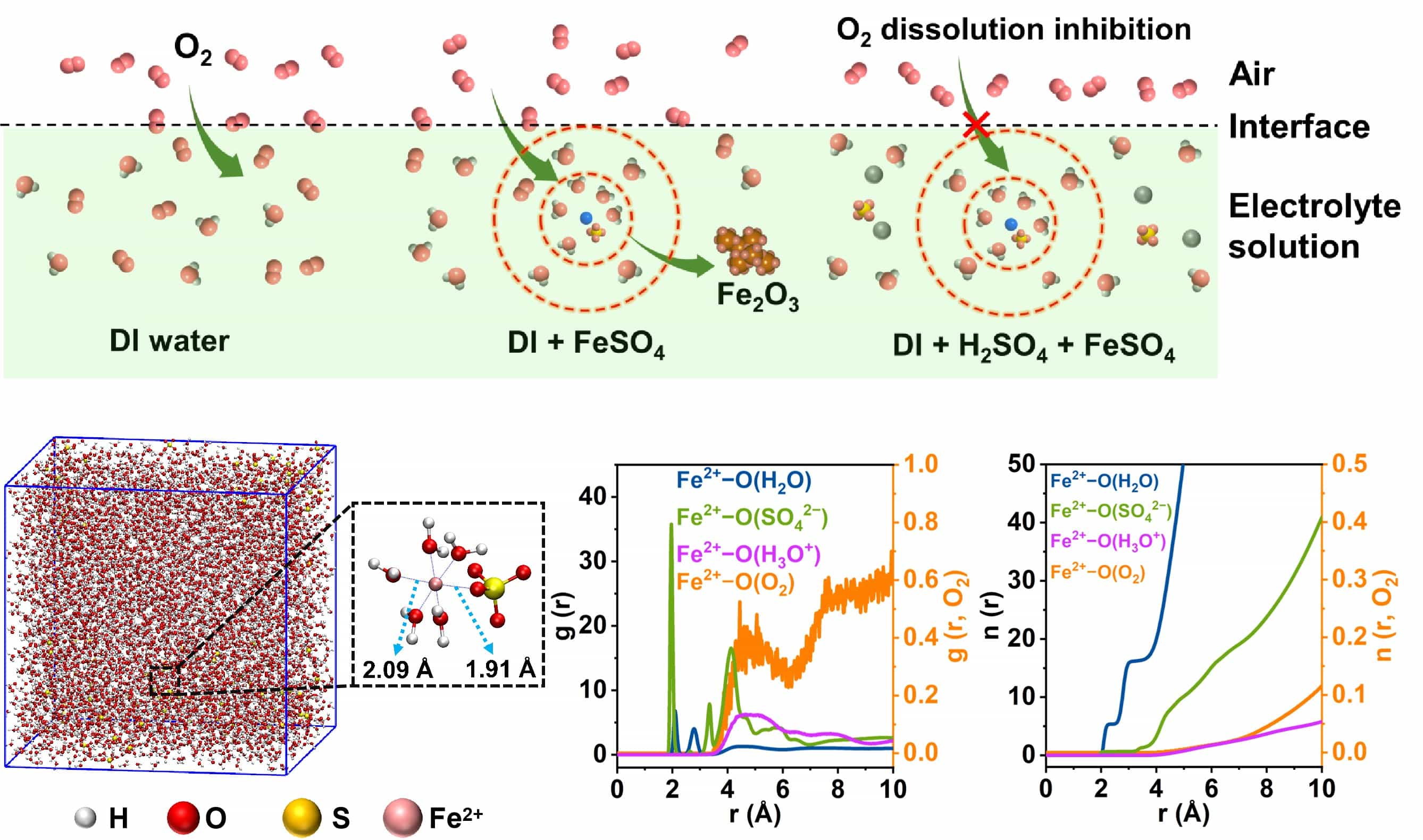 图1.酸性FeSO4−H2SO4电解液设计及其溶剂化结构