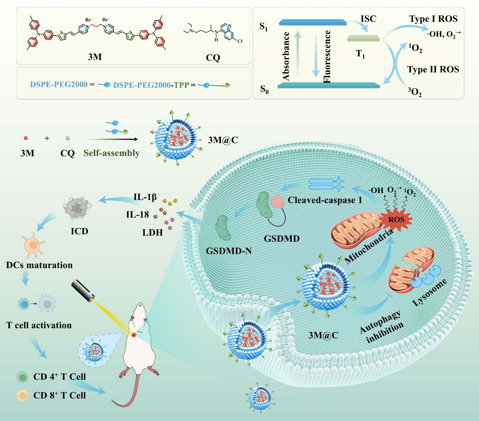光免疫疗法作为一种新兴的癌症治疗手段,巧妙地融合了光疗与免疫疗法的优势。其中,基于细胞焦亡的免疫治疗途径能够激发免疫原性细胞死亡,进而有效遏制肿瘤的生长。然而,在细胞焦亡进程中,线粒体氧化应激反应会激活肿瘤细胞的保护性自噬机制,这在很大程度上削弱了肿瘤细胞的死亡效果,成为制约光免疫治疗效果的关键因素。因此,开发出能够有效抑制肿瘤细胞保护性自噬来增强焦亡效应的治疗策略,对于突破当前治疗瓶颈、推动光免疫疗法的进一步发展具有至关重要的意义。