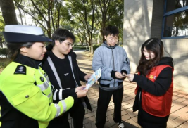 后续的志愿者普及交通安全知识在校园内进行,警官与志愿者们详细而耐心地为大学生们介绍交通法规的内容以及重要性,通过通俗上口的讲解让安全意识在学生们的内心扎根,号召学生们将安全知识普及给身边的朋友,正如今年的全国交通安全日主题——文明交通,你我同行。