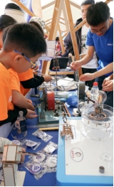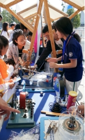 与此同时, 物理学院的“小小科学家”科普服务项目,作为 的唯一参展项目,学生科技创新协会积极筹备参与了此次嘉年华,让青少年亲自动手感受科学的魅力,展示了包括角动量守恒、锥体上滚、太阳能发电、磁悬浮、楞次定律等物理实验,并为到场参与的家庭赠送了张拉结构、电磁小火车、太阳能直升机、太阳能人造卫星等动手制作类实验材料包。现场参与市民近千人,赠送实验材料包数百份,科普服务受到了市民的广泛好评。