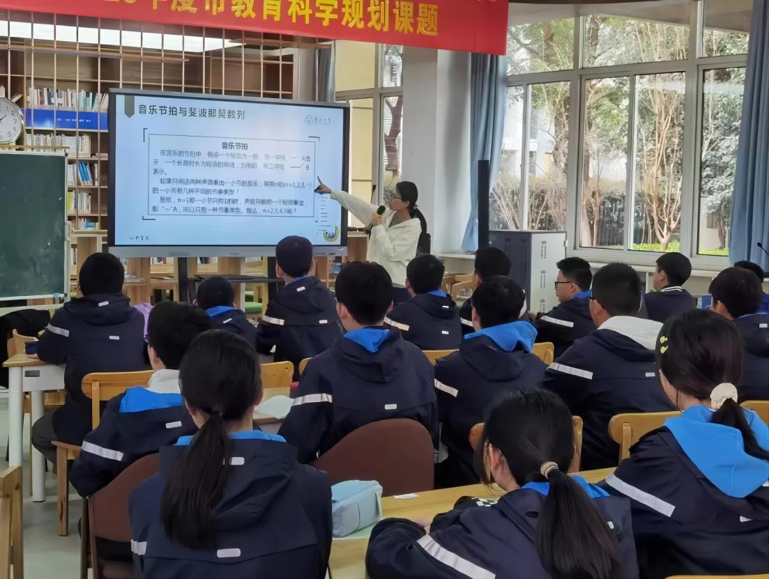 志愿者刘佳佳以音乐节拍的短音与长音交替规律作为引子,巧妙引导学生们探索其中隐藏的数学规律,最终引出了著名的斐波那契数列。跨学科的互动教学方法让抽象的数学概念更具体易懂,同时激发了同学们对数学的兴趣和好奇心。