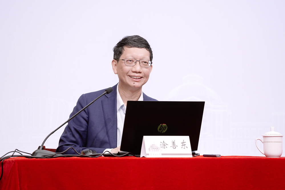 报告中,涂善东强调科学精神是执着求真,他从 校训出发,分享了自己对于“科学如何‘止于至善’”问题的思考。他认为,从事科学事业最需要具备的是批判和怀疑的精神,即科学的叛逆精神,只有不盲从前人的学术体系或理论方法,才有可能走出新的道路。他以牛顿、爱因斯坦等科学家推动自然科学发展的故事为例,介绍了叛逆属性在科学家的成长过程中发挥的重要作用。最后,涂善东分析了当今世界面临的全球气候变化、高度复杂的工程技术系统构建难题等挑战,寄语现场师生要在今后的学习科研中进一步完善批判性思维能力,强化创新意识,投入党和国家的科技创新事业中去。