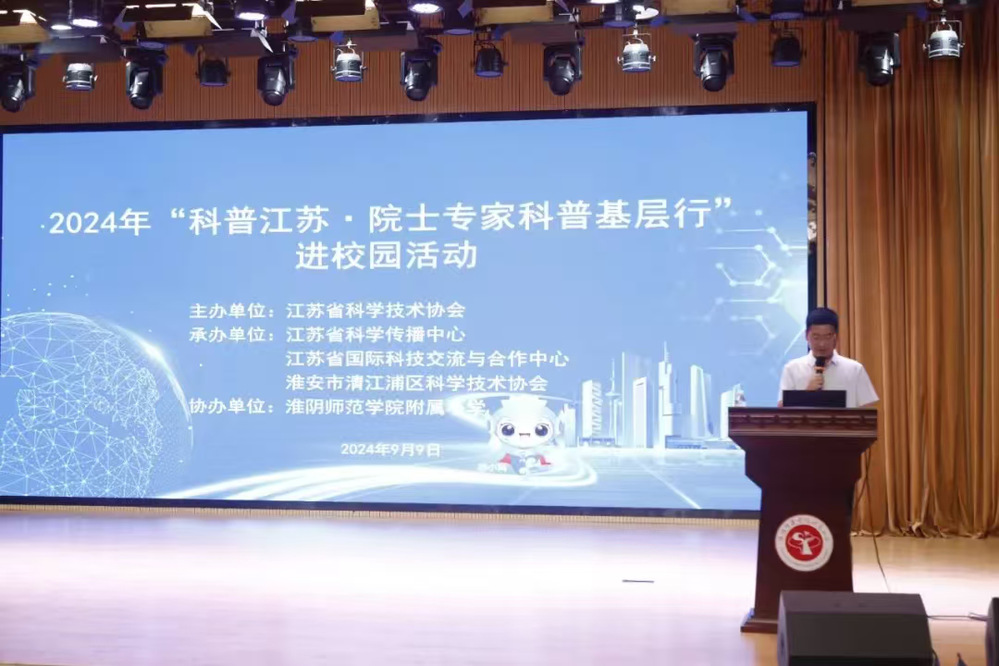 为激发青少年的科学梦想和科学志向,由江苏省科学技术协会主办,江苏省科学传播中心、江苏省国际科技交流与合作中心、淮安市清江浦区科学技术协会承办的2024年“科普江苏·院士专家科普基层行”进校园活动于9月9日下午在淮阴师范学院附属小学大同路校区举行。淮安市清江浦区科学技术协会党组书记、主席尤国宏同志出席本次活动,淮安市淮阴师院附小副校长高冲致欢迎词。