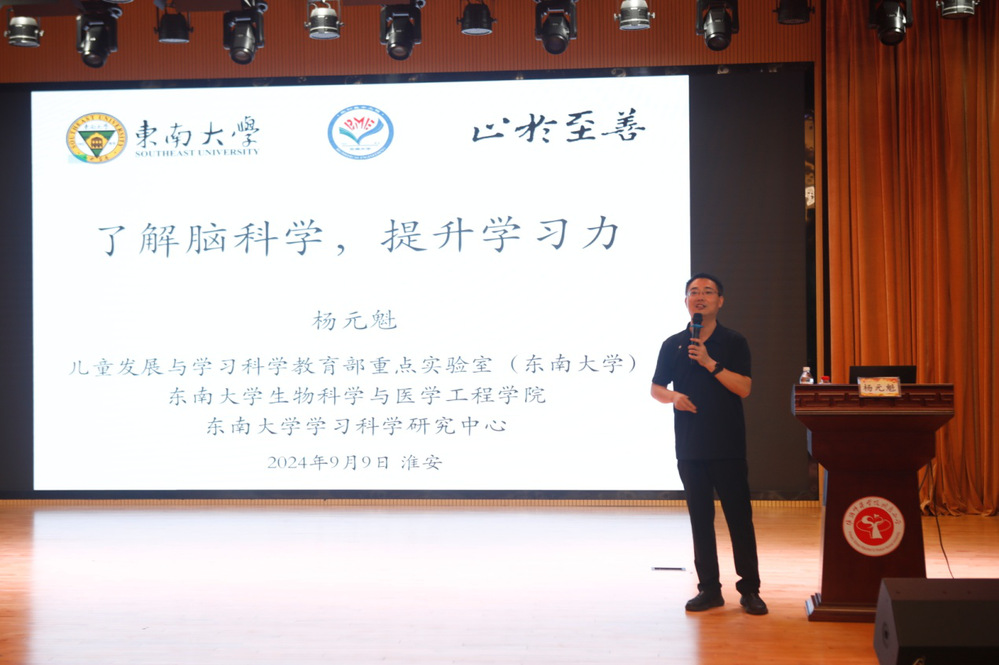 生物科学与医学工程学院、 学习科学研究中心、儿童发展与学习科学教育部重点实验室主任助理杨元魁博士为淮阴师院附小大同路校区五年级全体师生带来了一场主题为《了解脑科学提升学习力》的科普报告。