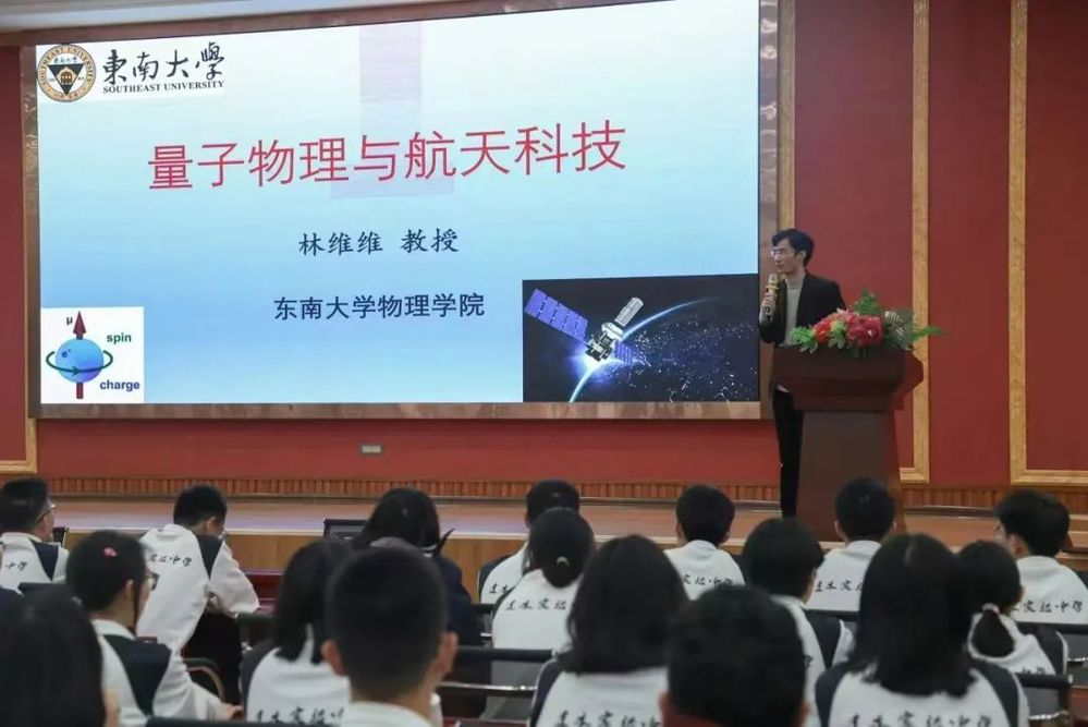 物理学院林维维教授,先后在昆明市第三中学、红河州第一中学、建水试验中学开展了《量子物理与航天科技》的科普讲座,各中学的同学们被精各的科普吸引,充满了好奇和激情。