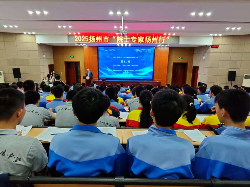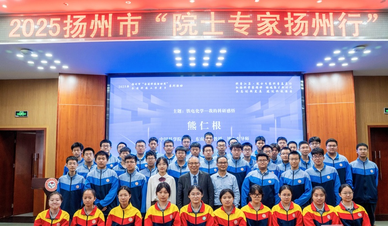 5月21日上午10点,在扬州大学附属中学报告厅,一场前沿科学知识与科学精神交融的报告会,在学生们轻松愉悦的氛围中开启。 铁电化学创始人熊仁根教授以《铁电化学—我的科研感悟》为主题,以接地气的态度,讲解铁电化学的科学知识,分享“在别人没有意识到”的时候敢于踏入并深耕不辍于铁电化学研究的经历与成果,分享数十年以来长期从事无机配位化学研究的科研感悟。